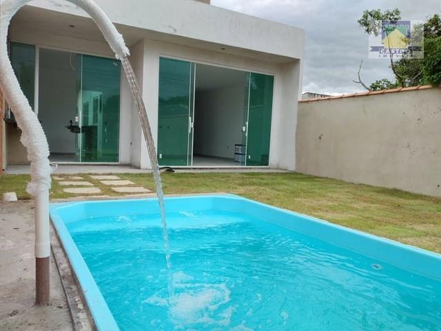 A casa é composta por 3 quartos, 2 banheiros, sala ampla cozinha integrada em dois ambientes, área goumert e uma incrível piscina!