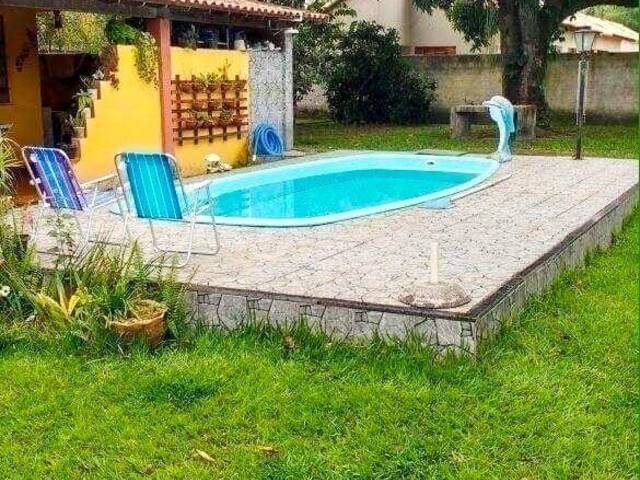 Casa composta por: 3 quartos, sala, cozinha, banheiro, varanda, área de serviço, piscina e ainda com dependência para caseiro.